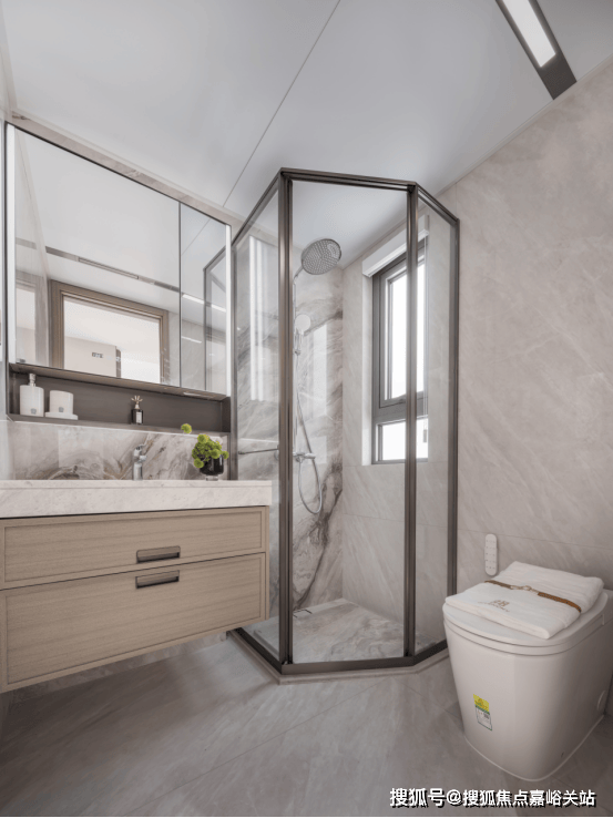 背后主墙面采用岩板设计,经久耐用,内部还收纳细节还预留4孔电源,电动牙刷、卷发棒等吹风机收纳孔、洗脸巾抽取孔。